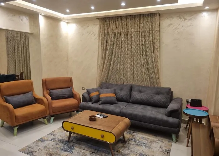 This apartment provides coffee/tea making machines and a fully furnished kitchen with a microwave oven, a refrigerator, and kitchenware. The apartment is just near Al-Tariq Al-Abyad bus station.